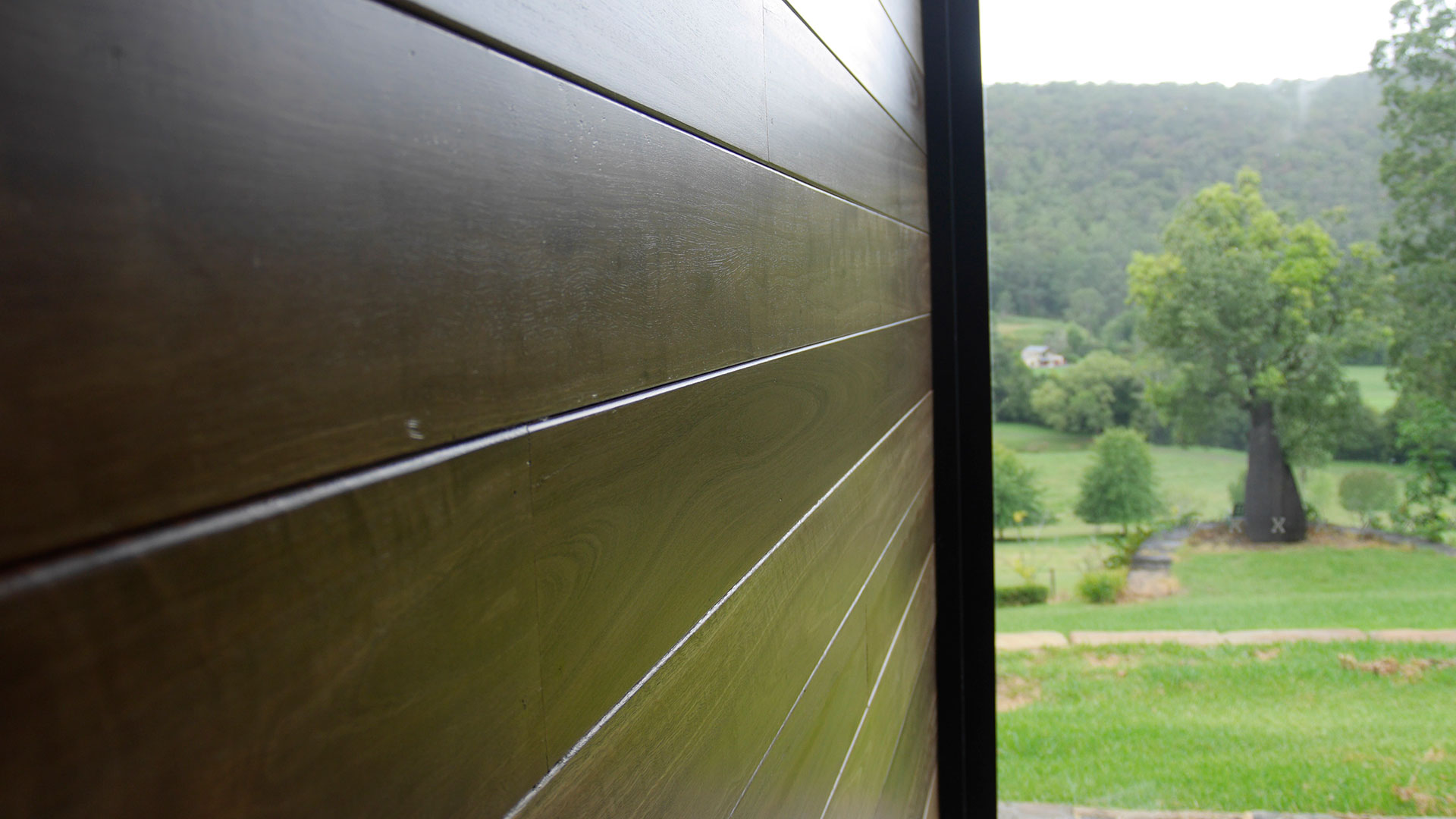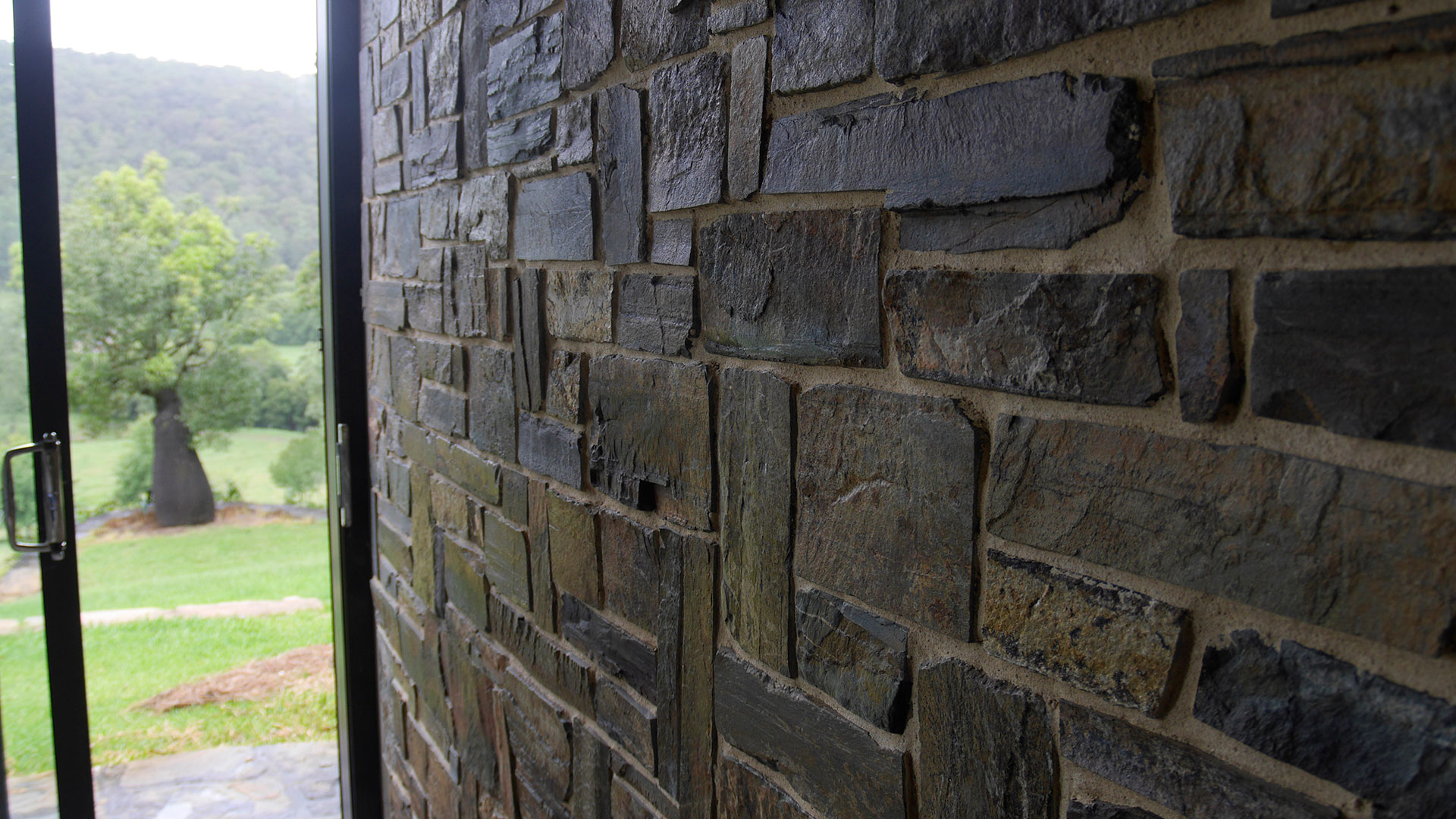 “With the teak walls it was just a matter of dynabolting battens onto the wall and putting the timber up,” Greg said. “And with the sandstone, slate and big sheets of weathering steel, we used one glue for them all, so it was very simple, and we’ve had zero failures of any of the surfaces we’ve adhered."