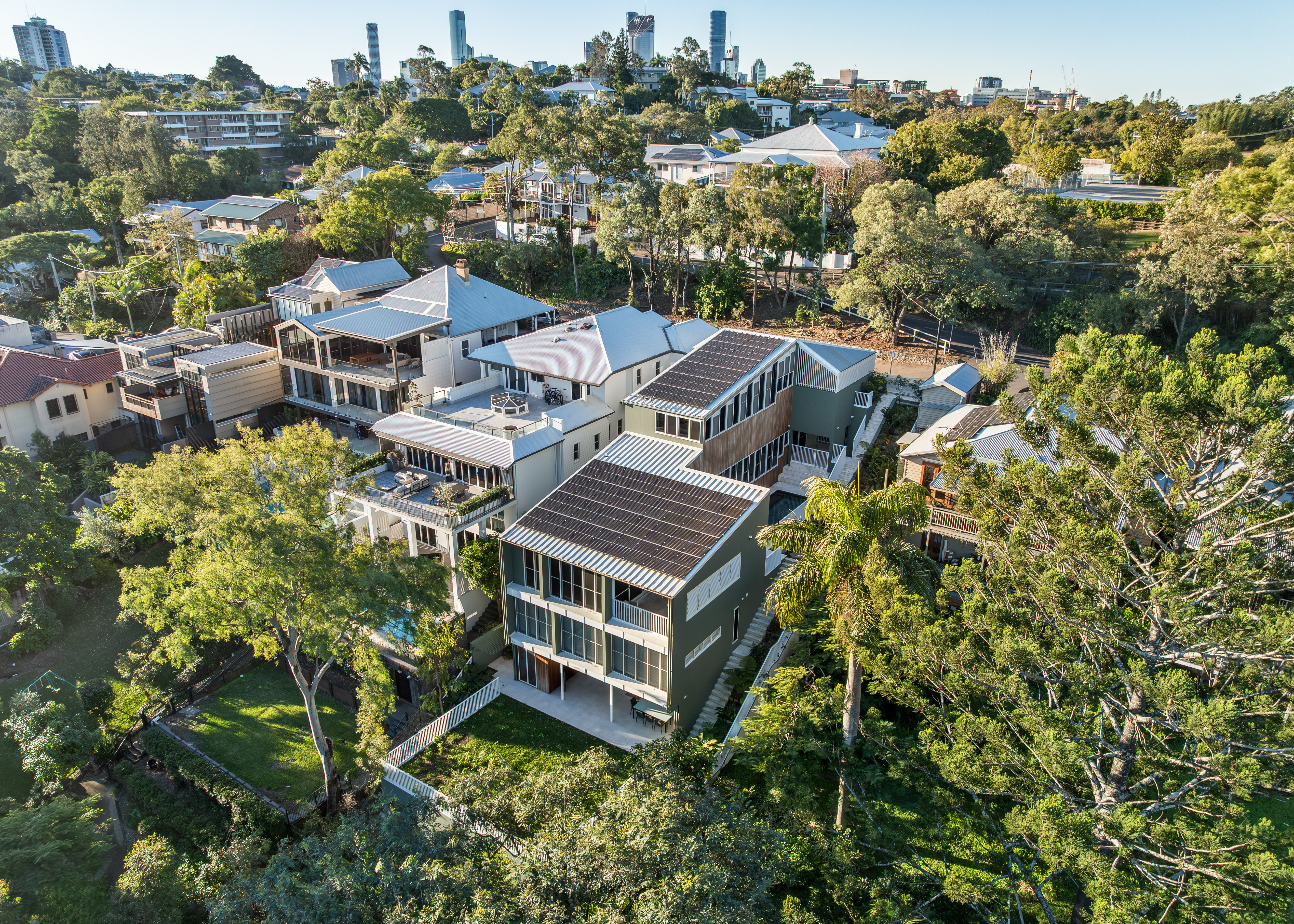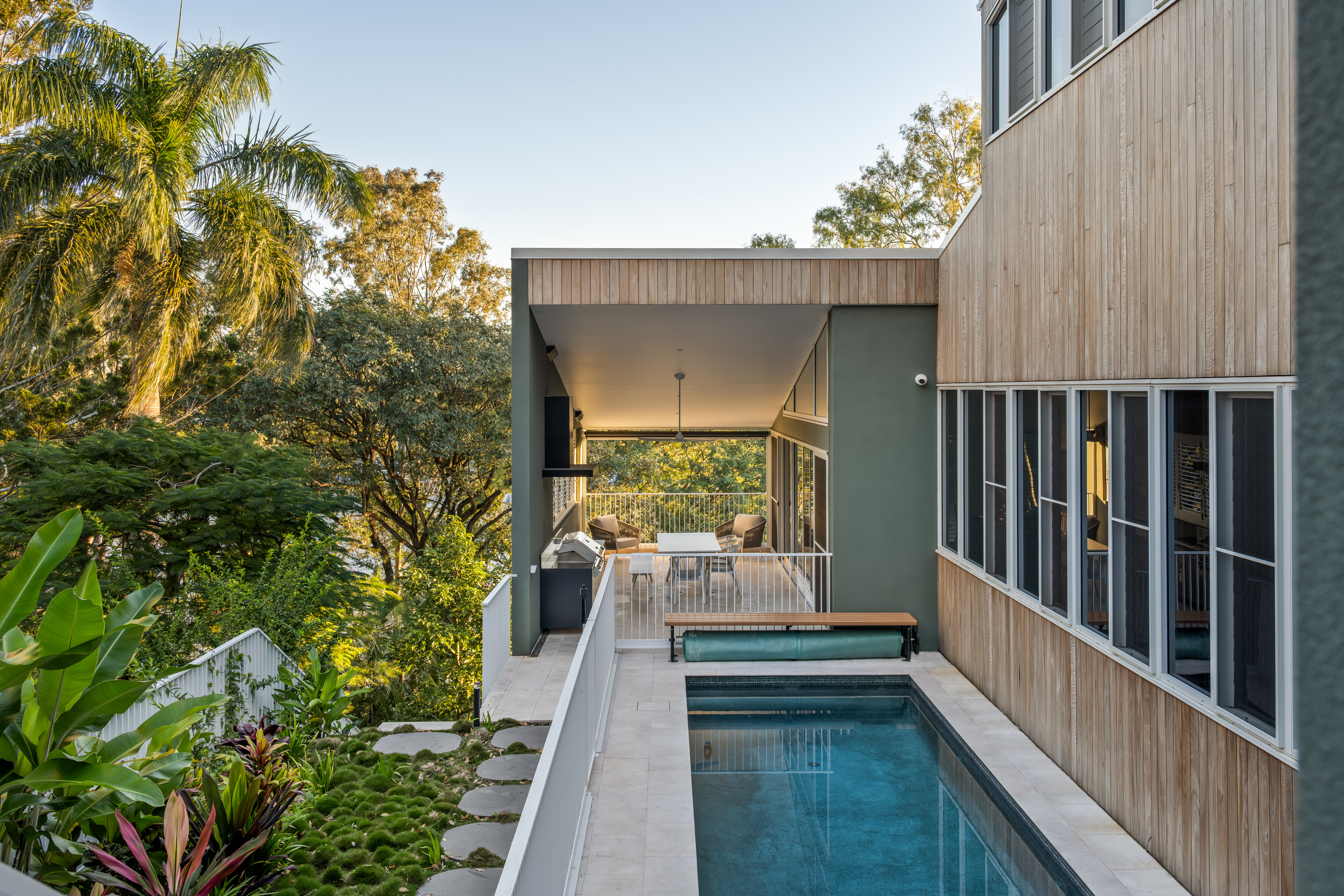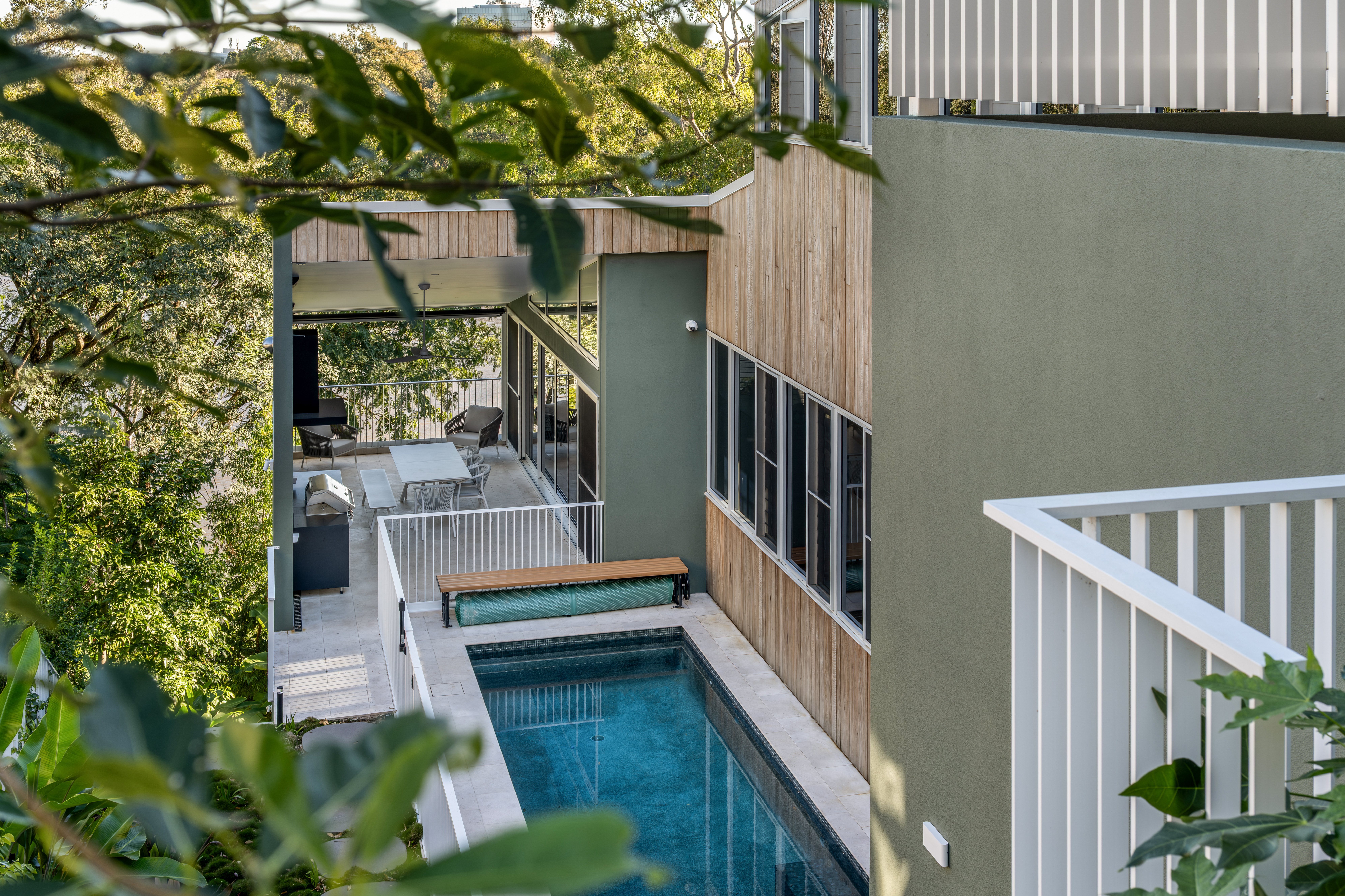BACKGROUND Perched on a dramatically steep plot in Dutton Park, Queensland, the four-level home alongside Borva Street epitomises the unbound potential of ingenuity and innovation in modern construction. The project's robust scope, accentuated by the block's scenic incline leading down to the Brisbane River, presented the team at Blackline Builders with a unique design canvas that far surpassed the conventional realm of residential architecture. |
